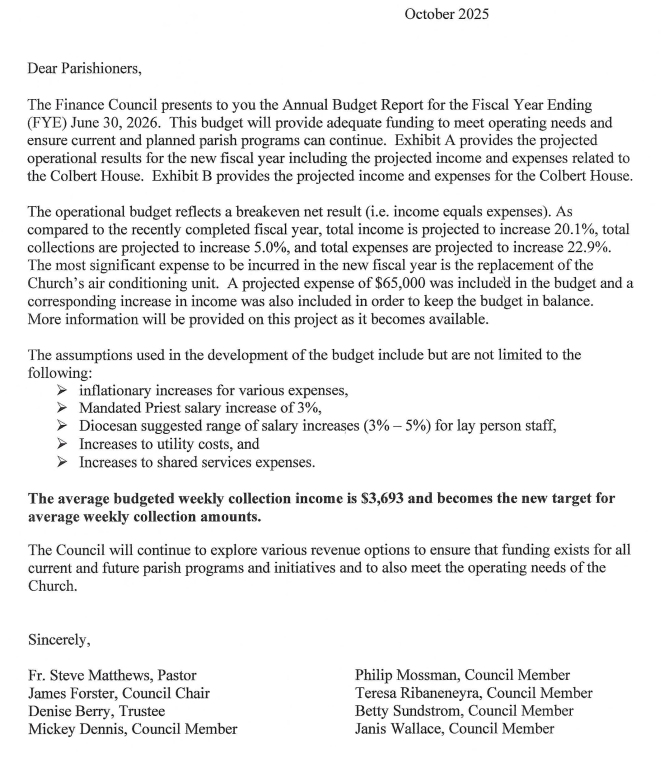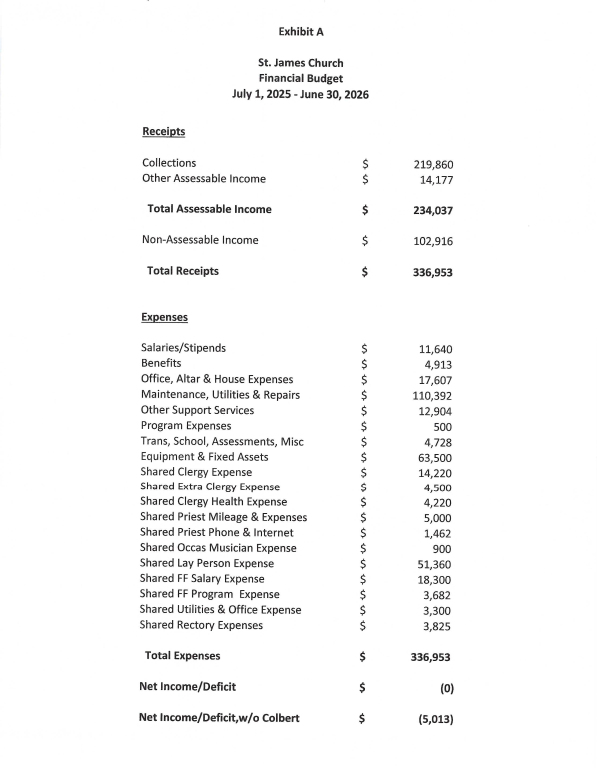 St James Annual Budget